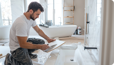 Pour votre maison ou appartement, nous vous proposons un service complet de rénovation de salle de bains clés en main, sans avoir à multiplier les interlocuteurs. Nous assurons votre confort thermique avec des systèmes de chauffage performants (chaudières, PAC, climatisation) et des énergies renouvelables. Comme si nous le faisions pour notre propre maison, nous vous orientons vers les choix optimaux pour votre bien.